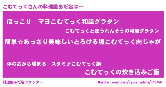 | ヘコむあだ名 | 『こむてっく(笑)』『酢こんぶ』 |