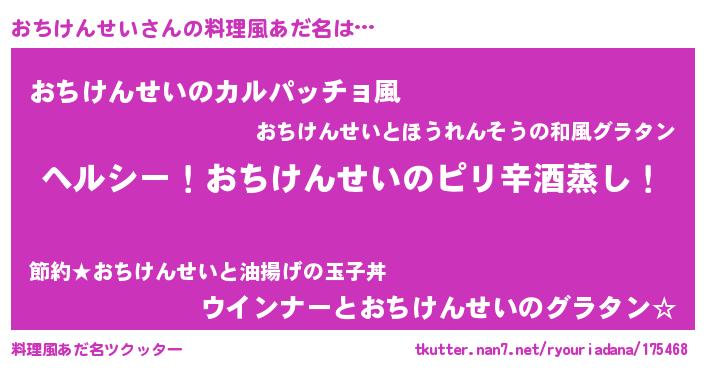 | 胡散臭い通販商品みたいなあだ名 | 『テレビで話題の高麗人参…その名も「おちけんせい」』 |