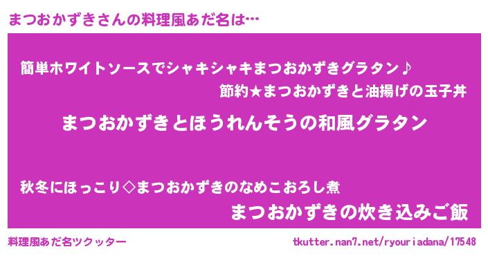 | ポケモン風あだ名 | 『マツキング』『ヒマツオカズキ』 |