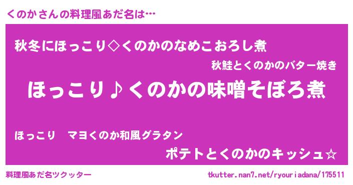 | 胡散臭い通販商品みたいなあだ名 | 『必ず成功するブレスレット…その名も「くのか」』 |
