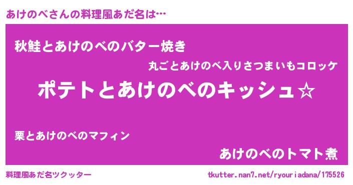 | 男性向けラノベタイトル風あだ名 | 『ダンジョンにあけのべを求めるのは間違っているだろうか』 |
