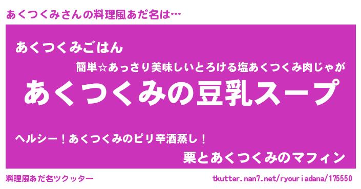 | ヘコむあだ名 | 『あくぷりん』『あくつくみ(爆)』 |