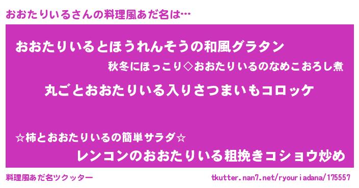 | 女子向けラノベタイトル風あだ名 | 『乙女ゲームの破滅フラグしかない悪役おおたりいるに転生してしまった…』 |