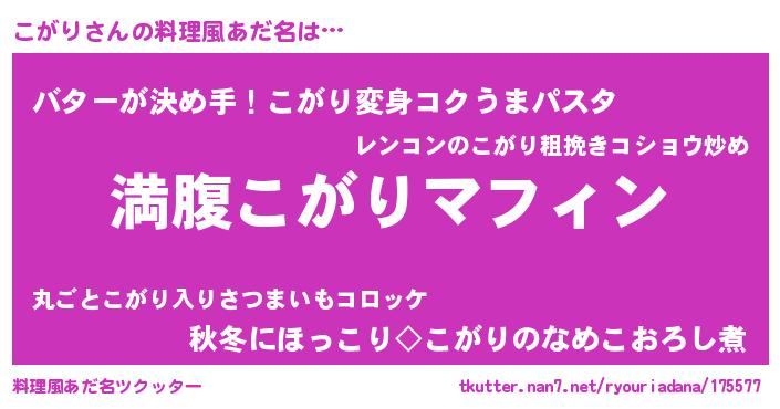 | 意味不明あだ名 | 『永久保存こがり』『自称こがり』 |