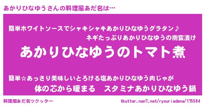 | 男性向けラノベタイトル風あだ名 | 『おまえをオタクにしてやるから、俺をあかりひなゆうにしてくれ! 』 |