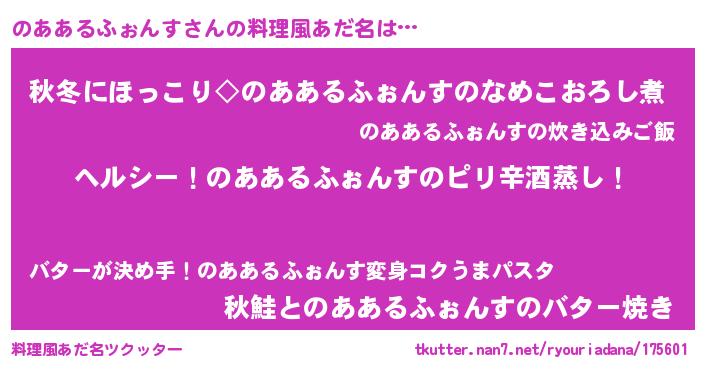 | ヘコむあだ名 | 『のああるふぉんす(遠い目)』『なまこ酢』 |