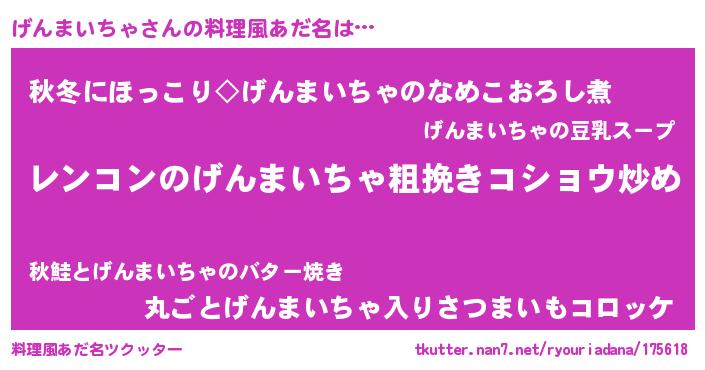 | 意味不明あだ名 | 『自称げんまいちゃ』 |