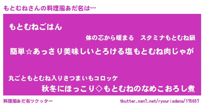 | ヒーロー風カッコイイあだ名 | 『ネオモトムネ』『ウルトラもとむねマン』 |