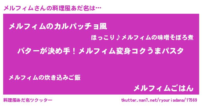 | 女子向けラノベタイトル風あだ名 | 『メルフィム恋絵巻』 |