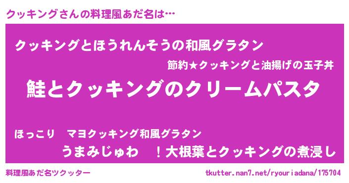| 男性向けラノベタイトル風あだ名 | 『ノーゲーム・ノークッキング』 |