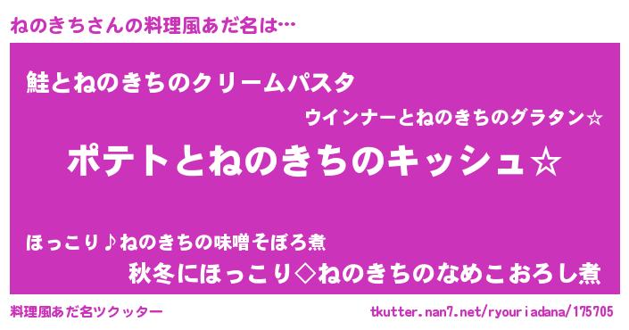 | 男性向けラノベタイトル風あだ名 | 『ねのきちの嫁は女の子じゃないと思った?』 |