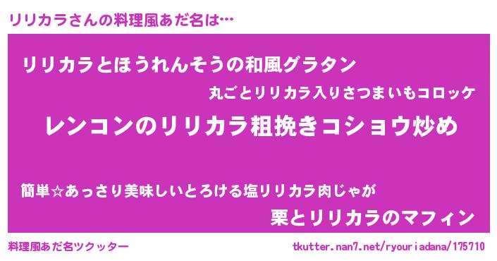 | ヘコむあだ名 | 『リリカラ(爆)』『リリぷりん』 |