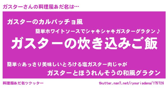 | 意味不明あだ名 | 『住所不定無職ガスター(5歳)』 |
