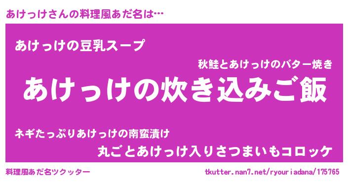 | 意味不明あだ名 | 『とにかく怪しいあけっけ』 |