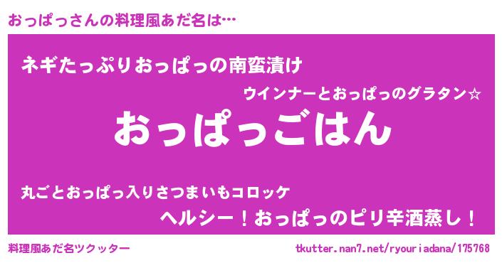 | ヒーロー風カッコイイあだ名 | 『スーパーオッパッ』『究極戦士オッパッ』 |