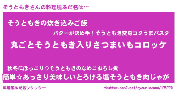 | ヘコむあだ名 | 『そうともき(震え声)』『そう太郎』 |