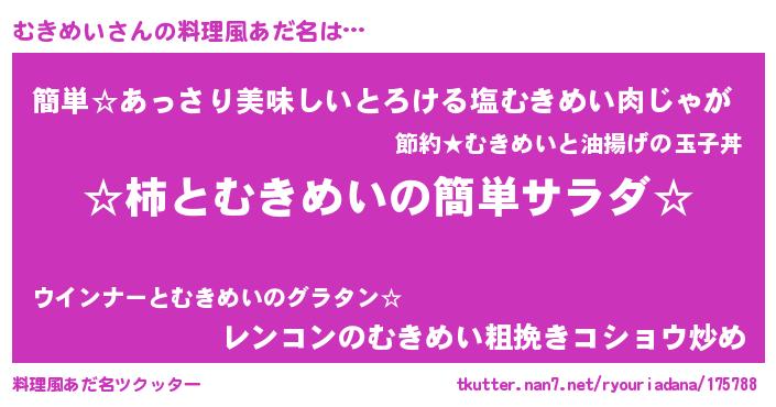| ヘコむあだ名 | 『むきめい(笑)』『むきもー』『牛乳』 |