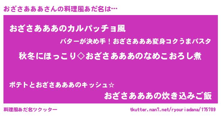 | 男性向けラノベタイトル風あだ名 | 『おざさあああに滅ぼされるだけの簡単なお仕事です』 |