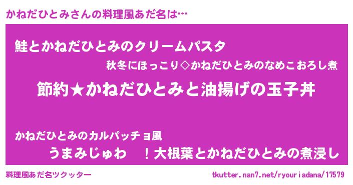 | ヘコむあだ名 | 『かねにゅー』『酢こんぶ』『かねを』 |