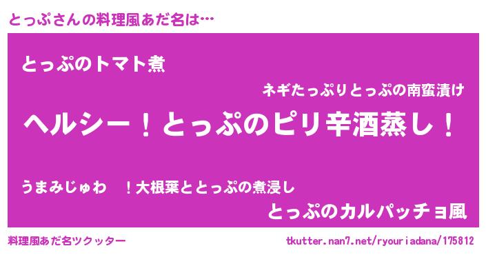 | 意味不明あだ名 | 『自称とっぷ』『眠気覚ましガムとっぷ味』 |