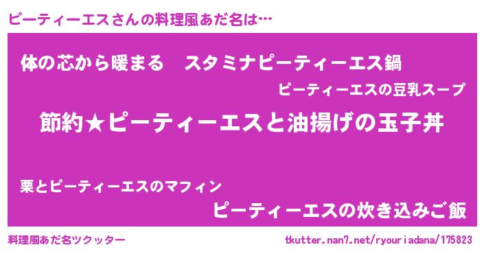 | 女子向けラノベタイトル風あだ名 | 『ピーティーエス姫と円卓の騎士』 |