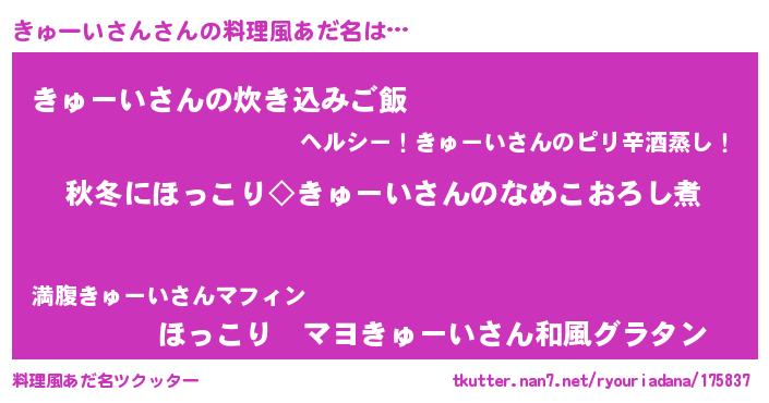 | 胡散臭い通販商品みたいなあだ名 | 『あなたにだけ特別に提供する限定10本のレアな日本酒…その名も「きゅーいさん」』 |