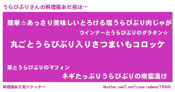 | 意味不明あだ名 | 『住所不定無職うらびぶり(95歳)』 |