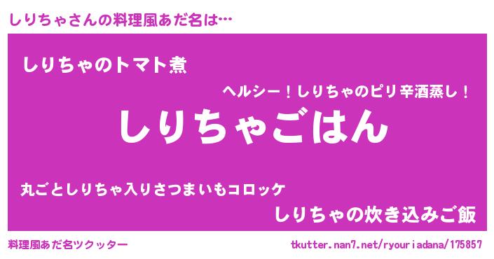 | 意味不明あだ名 | 『しいたけ科しりちゃ属』『自称しりちゃ』 |