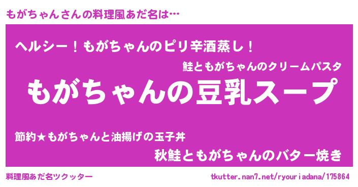 | 胡散臭い通販商品みたいなあだ名 | 『信頼と実績のネックレス…その名も「もがちゃん」』 |