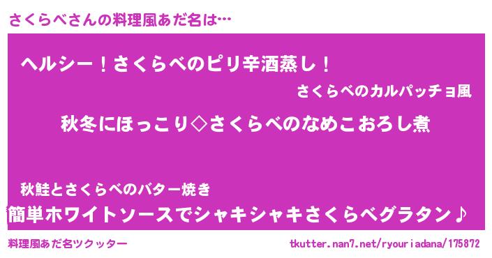 | 意味不明あだ名 | 『自称さくらべ』『永久保存さくらべ』 |