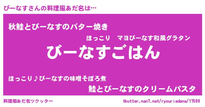 | ヘコむあだ名 | 『びーなす(爆)』『びーにー』 |