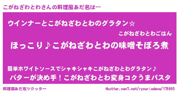 | 胡散臭い通販商品みたいなあだ名 | 『必ず成功するブレスレット…その名も「こがねざわとわ」』 |