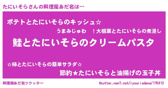 | ポケモン風あだ名 | 『タックウザ』『ヒタニイソラ』 |