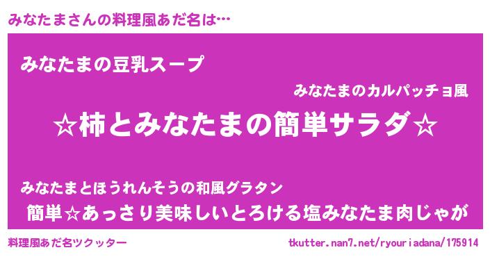 | 意味不明あだ名 | 『とにかく怪しいみなたま』 |
