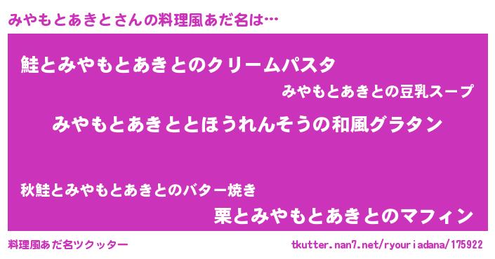 | ヘコむあだ名 | 『みやっぺ』『みやもとあきと(笑)』 |