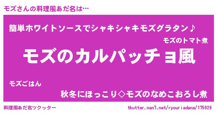 | 意味不明あだ名 | 『住所不定無職モズ(10歳)』『永久保存モズ』 |