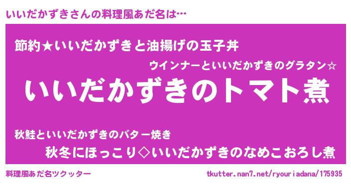 | 女子向けラノベタイトル風あだ名 | 『いいだかずき夫妻のなれそめ』 |