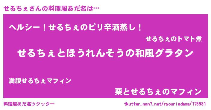 | 意味不明あだ名 | 『なめこ科せるちぇ属』『自称せるちぇ』 |