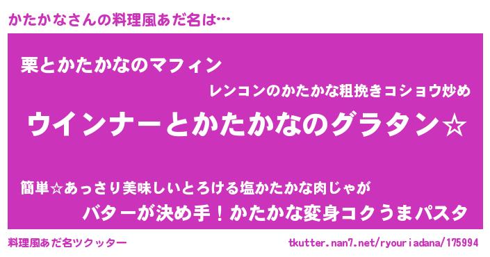| 女子向けラノベタイトル風あだ名 | 『かたかな伯爵の花嫁』『かたかな恋絵巻』 |