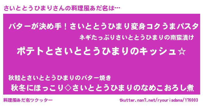 | 意味不明あだ名 | 『とにかく怪しいさいととうひまり』 |