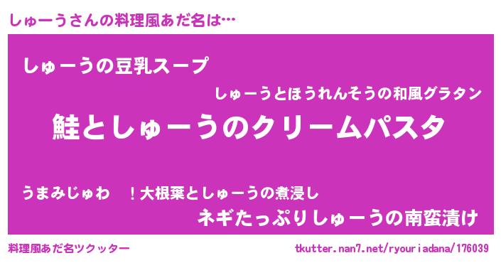 | ヒーロー風カッコイイあだ名 | 『慈愛の使者しゅーう』『天弓騎士シュ』 |