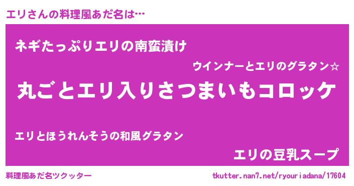 | 意味不明あだ名 | 『住所不定無職エリ(11歳)』『ペロリンエリ』 |