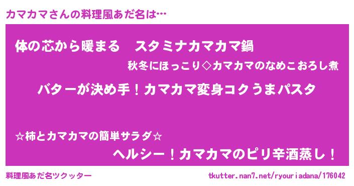 | 女子向けラノベタイトル風あだ名 | 『カマカマ恋絵巻』『闇のカマカマ』 |
