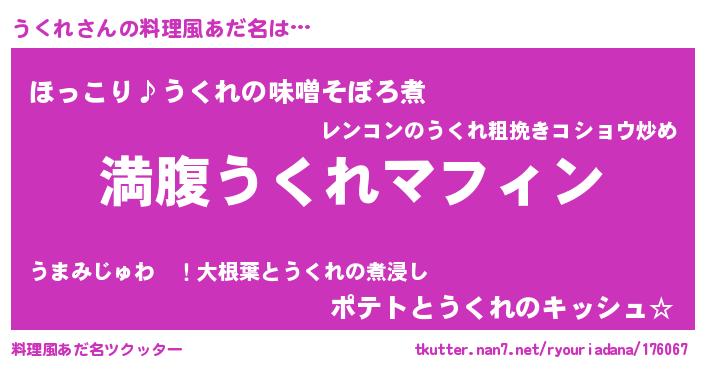 | ヘコむあだ名 | 『うくれ(遠い目)』『うくっふぃ~』 |