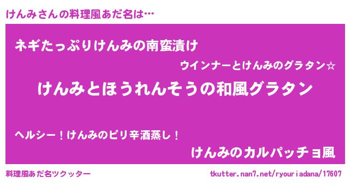 | ヘコむあだ名 | 『けんにー』『豆乳』『けんっ子』 |