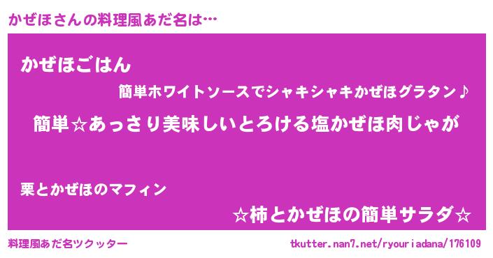| 欧米人風あだ名 | 『ダルビッシュかぜほ』『ウサインかぜほ』 |