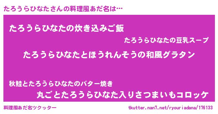 | ヘコむあだ名 | 『たろを』『たろうらひなた(震え声)』 |