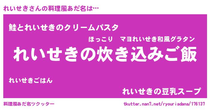 | ヘコむあだ名 | 『れいぷりん』『れいせき(爆)』 |