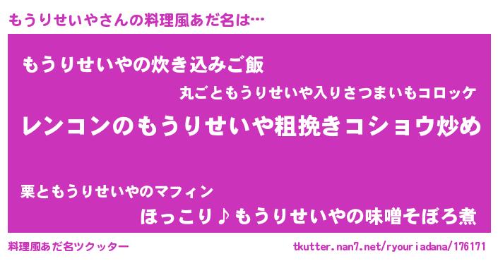 | 胡散臭い通販商品みたいなあだ名 | 『ガンによく効くアガリクス…その名も「もうりせいや」』 |