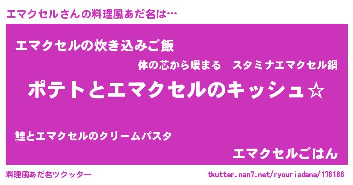 | 男性向けラノベタイトル風あだ名 | 『ダンジョンにエマクセルを求めるのは間違っているだろうか』 |